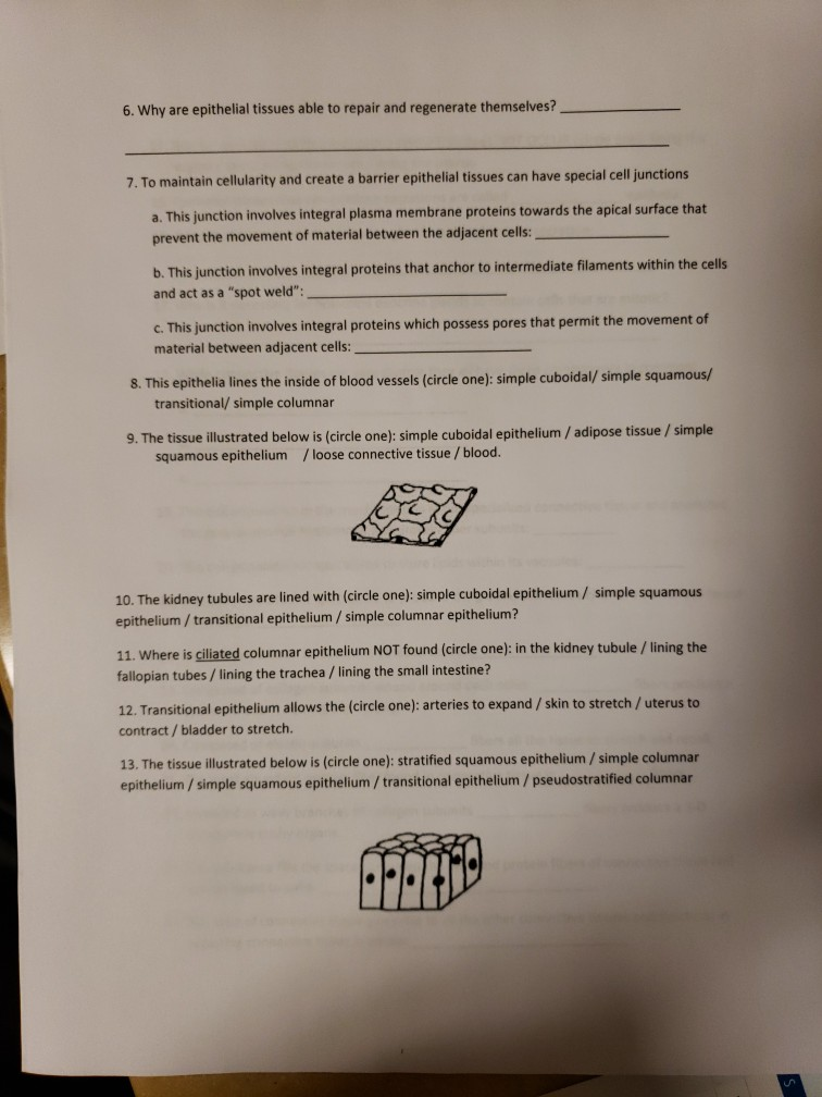 Solved 6 Why Are Epithelial Tissues Able To Repair And R
