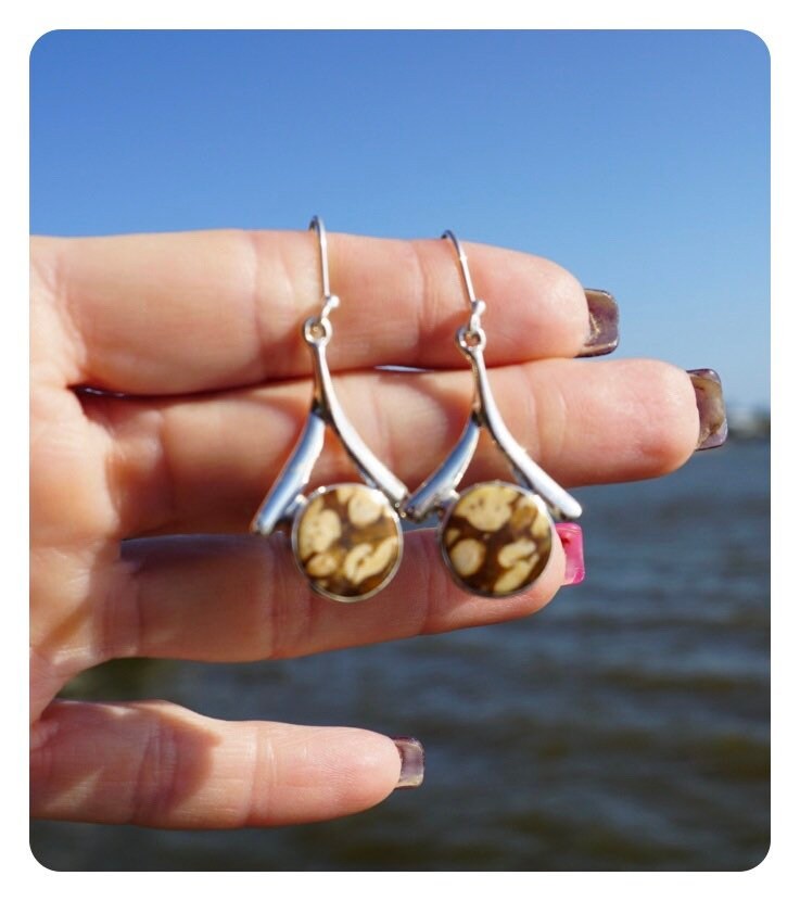 Polished Petrified Wood Earrings Peanut Jasper In 925 Sterling