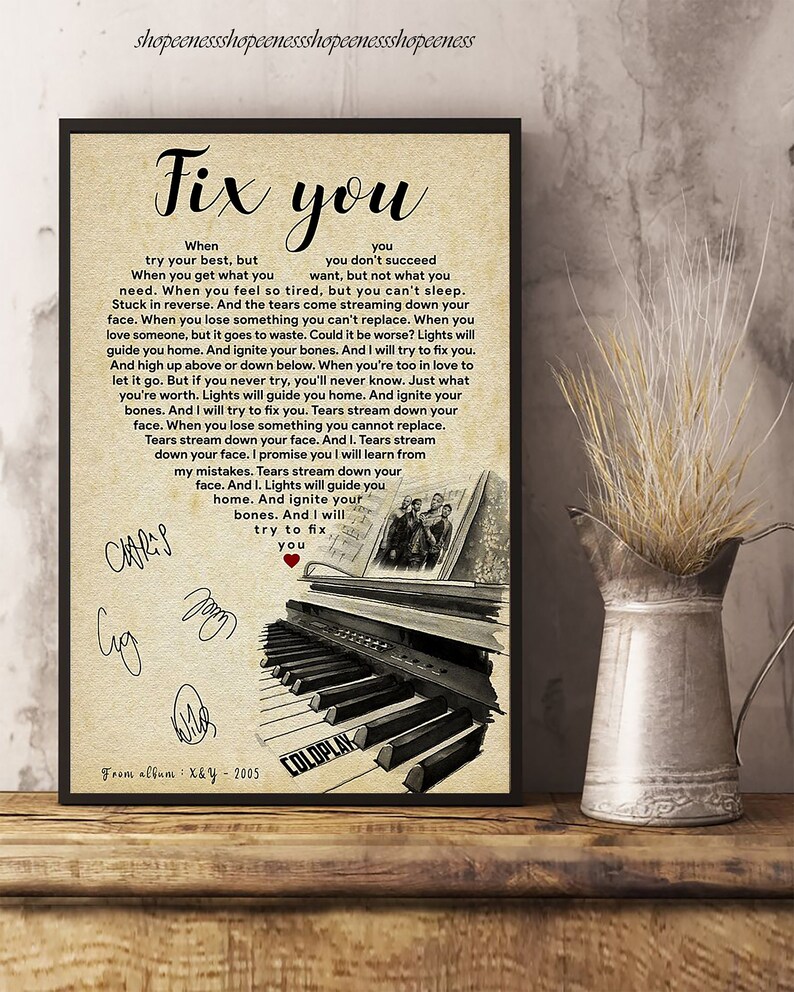 Lovely Fix You Lyrics Heart Signatures Poster Top 100 Hot Shirts