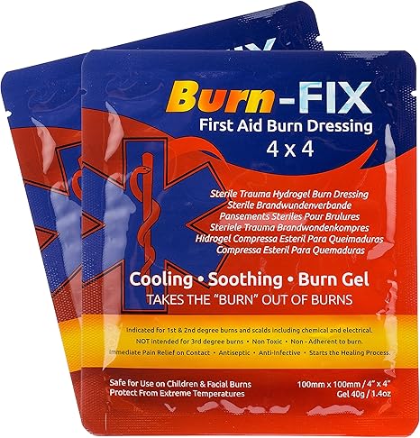 Amazon Com Burn Fix 2 Pack Burn Gel Dressing 4 X 4 Burn Care First Aid Treatment Immediate Pain Relief Burn Cream Hydrogel For 1st 2nd Degree Burns Chemical Razor And Sunburns For Home Work Fire