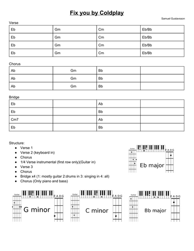 Fix You Coldplay Lead Sheet For Guitar Bass And Piano