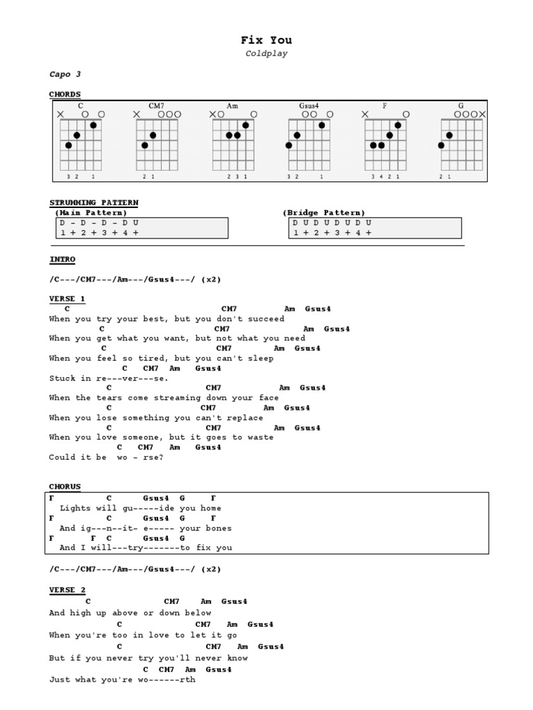 Chord Gitar Lagu Fix You Chord Gitar Lagu Lagu Kenangan