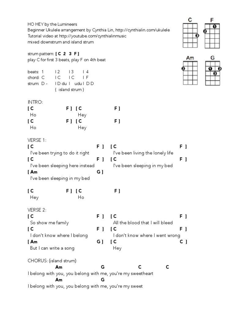 Ho Hey Beginner Ukulele Chord Chart Song Structure Singles