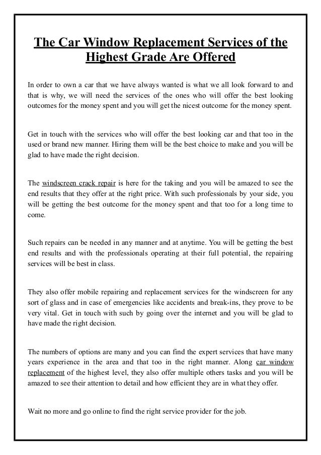 The Car Window Replacement Services Of The Highest Grade Are Offered