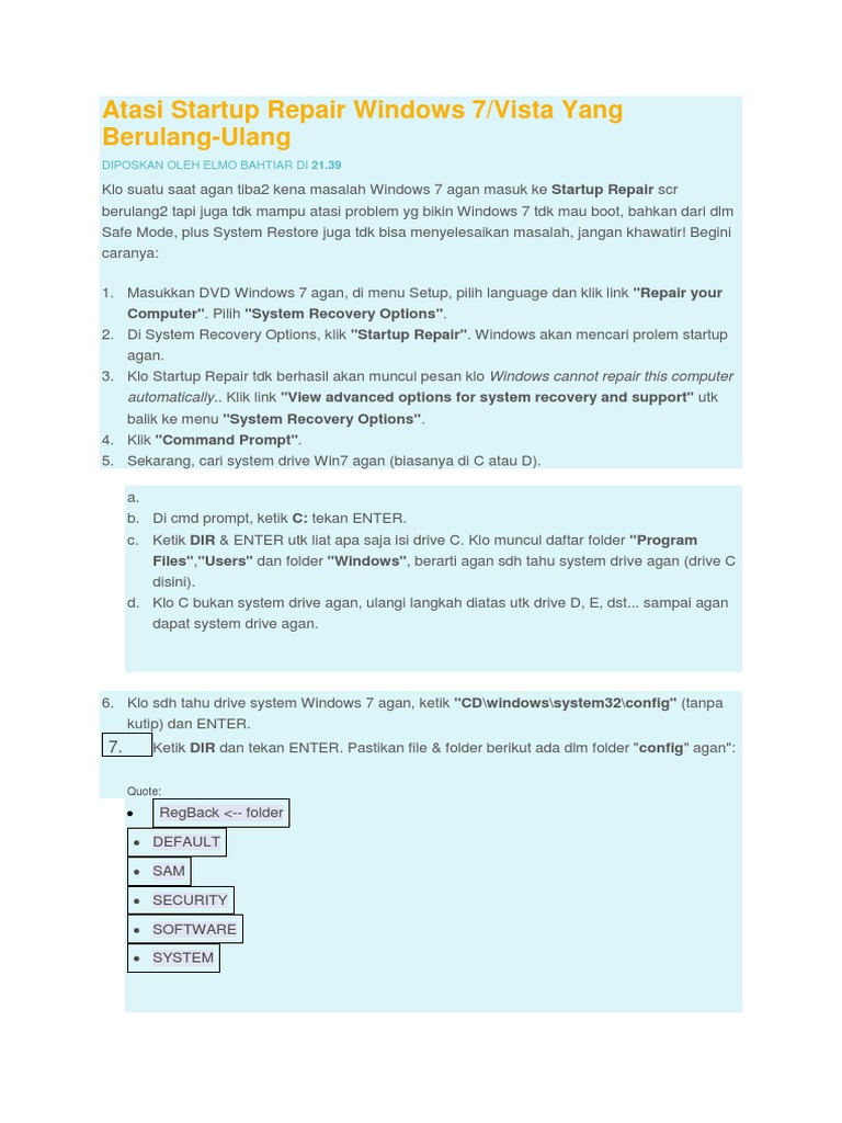Cara Memperbaiki Startup Repair Loop Pada Windows 7 K2rx Com