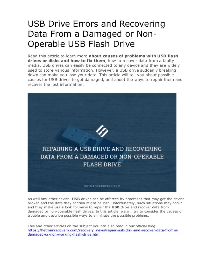 Usb Drive Errors And Recovering Data From A Damaged Or Non Operable U