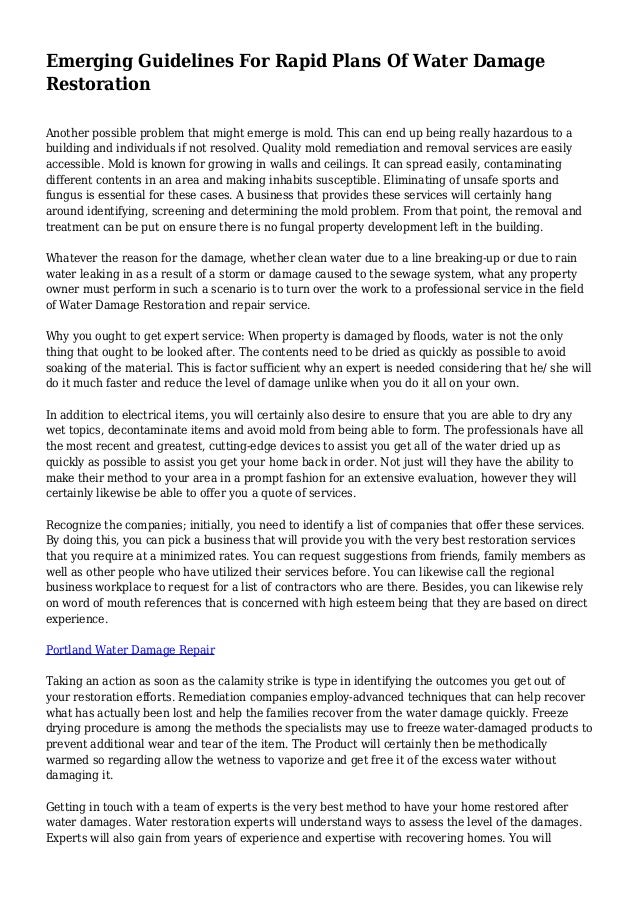 Emerging Guidelines For Rapid Plans Of Water Damage Restoration