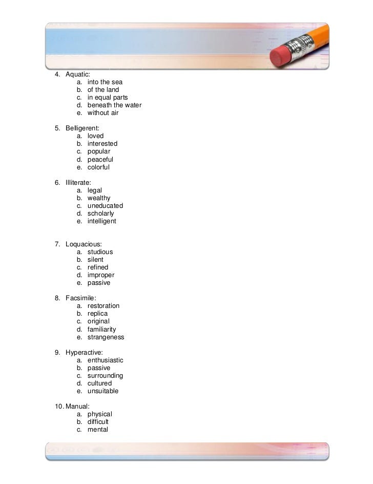Reading Comprehension Synonyms And Antonymys