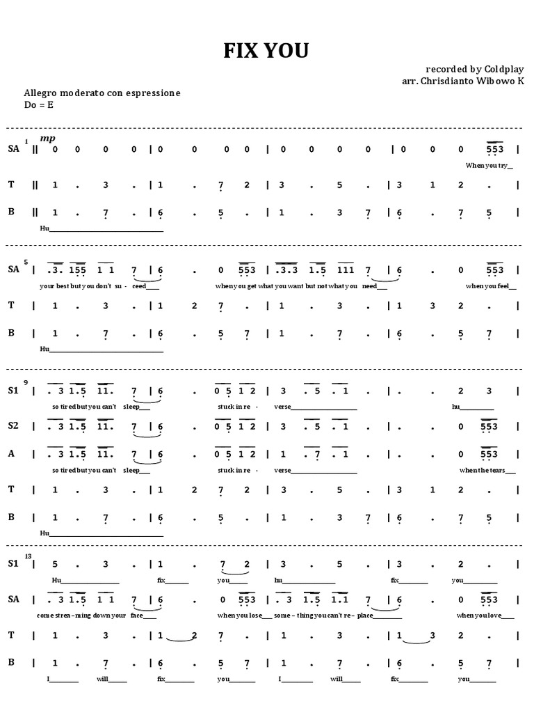 Coldplay Fix You Sheet Music For Guitar Chords Pdf