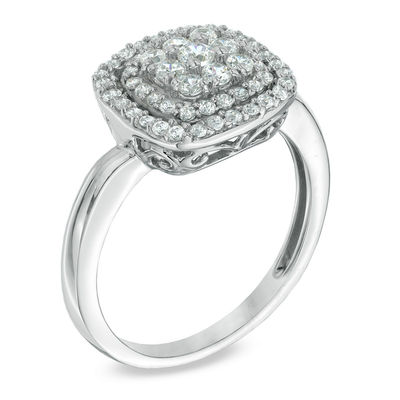 1 2 Ct T W Diamond Cushion Cluster Frame Ring In 10k White Gold