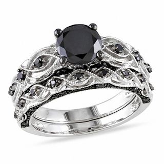 1 3 8 Ct T W Enhanced Black Diamond Vintage Style Bridal Set In